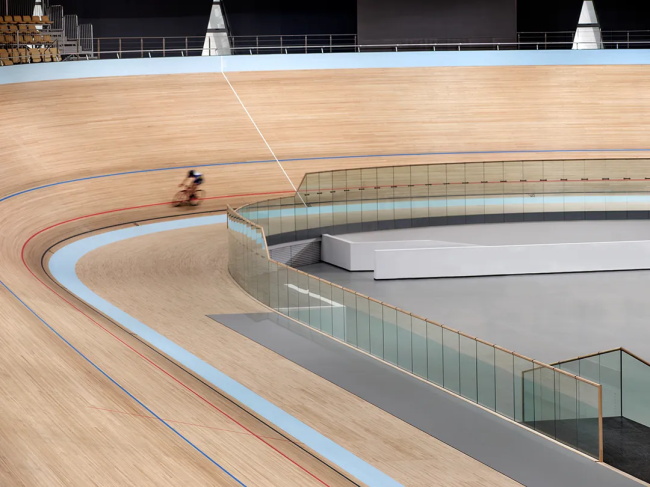 它不是一座常规体育建筑。关于速度的极致需求、曲面几何的精细推演以及建造边界的持续试探,都被压缩进一个秩序严谨、纯净克制的整体之中。建筑师面对的是一个高度耦合的复杂系统:赛道曲率、高度限制、赛事规范、结构平衡、视线组织与动线安排环环相扣,最终形成了形式、材料与结构之间轻盈而有力的共生。