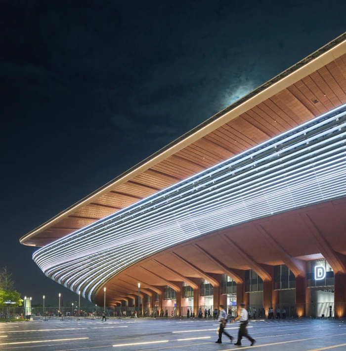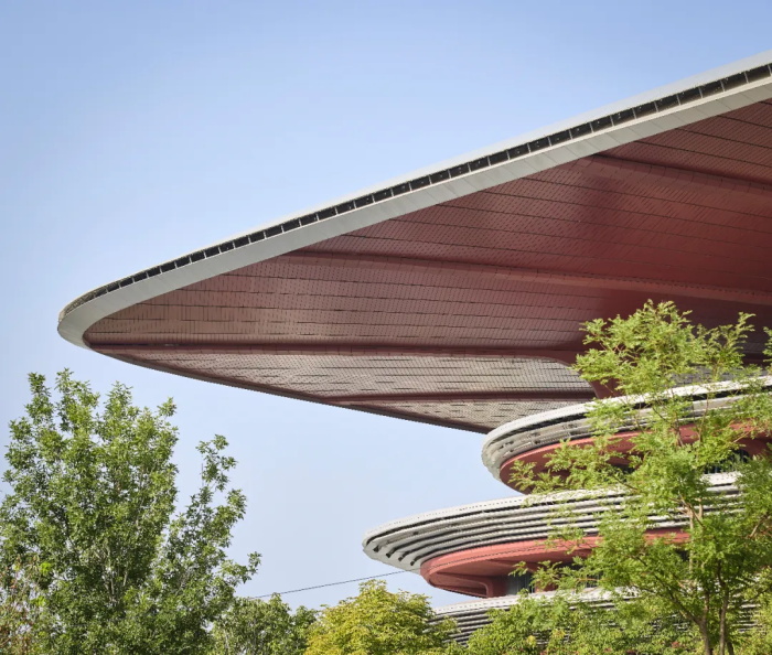 超轻型的大跨度索网屋顶结构产生的荷载极小,通过最小化主体结构所需材料,显著降低了体育场的隐含碳。宽大的屋顶屋檐为建筑围护结构内的设施提供了遮蔽,而大型遮阳露天露台和公共走廊则为西安大陆性气候的炎热夏季提供了舒适的环境。