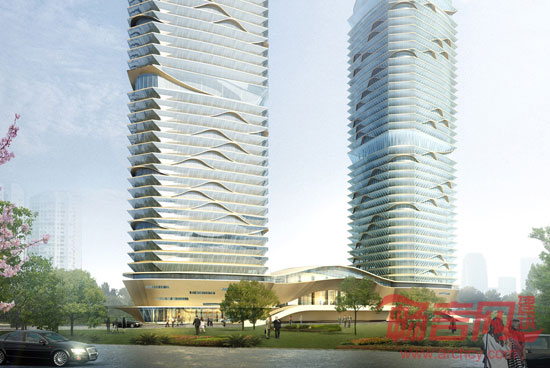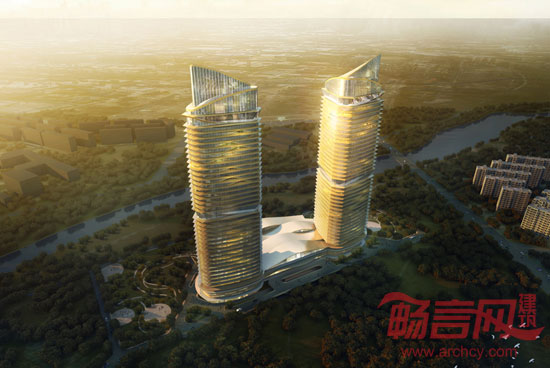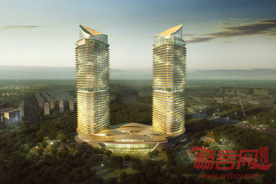双塔的造型理念来自中国的古代砖塔优雅的浅挑檐,华表上精美的浅浮雕龙云纹,凸现了西咸双城的古韵之美;同时,在建筑形态处理上又吸收了当代设计理念中对肌理和材料的巧妙运用。二者的结合使西咸双塔既古朴又时尚,建筑表皮的造型处理如伏于云中的巨龙鳞片,蜿蜒盘旋上升,谕示着西咸双龙一飞冲天。