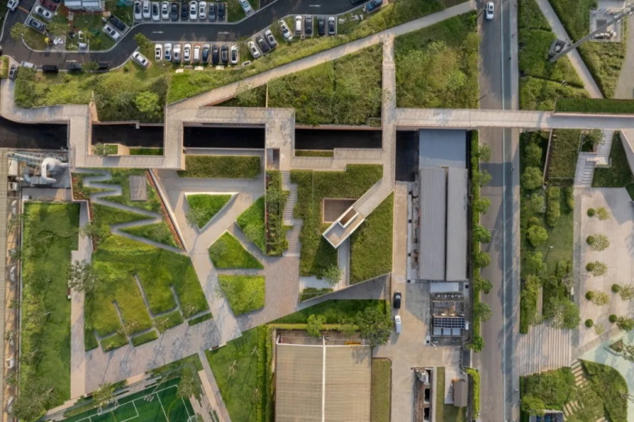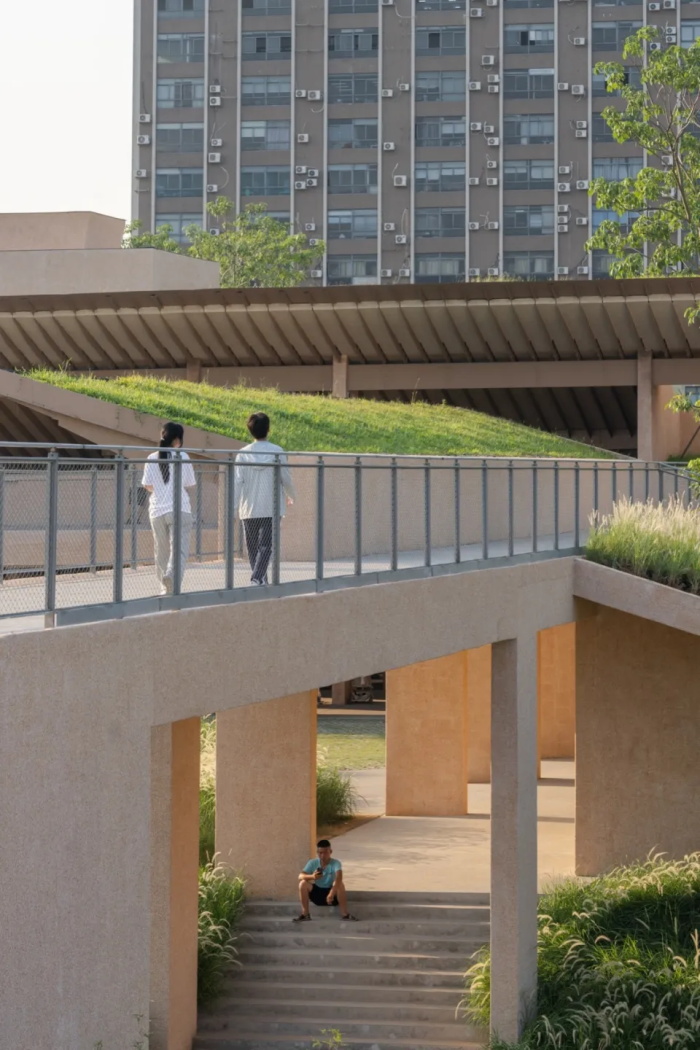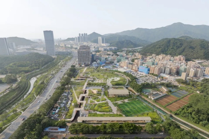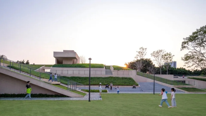 在深圳环西丽湖绿道蜿蜒的脉络中,百旺村南侧曾是一片被围栏紧锁的“失落之地”——约4公顷的土地,其下深埋着肩负城市水管理重任的径流调蓄池与初雨调蓄池。基础设施的硬性需求将其定义为纯粹的工程用地,阻隔了人与自然的亲近,也切断了村落与绿道的连接。白芒拓印项目的诞生,正是对这片场地的一次深刻唤醒与诗意再造。我们的设计核心在于:破除藩篱,构建开放共享的公共空间;巧用立体复合策略,于基础设施之上“拓印”出自然野趣的大地景观;以“白芒”为意象,重新诠释场地记忆,并编织起村落与绿道的崭新纽带。