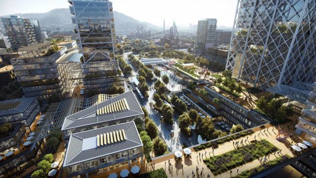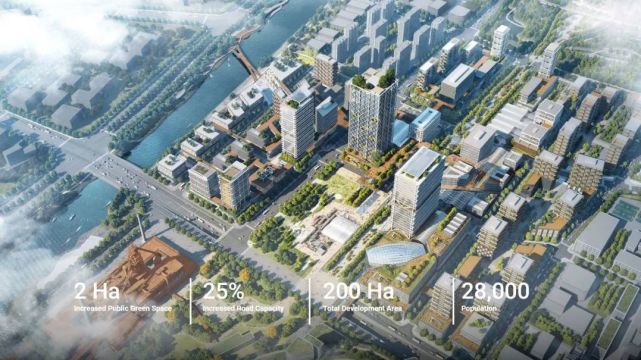 在杭州地铁杭钢站 TOD 项目中, SOM 为 TOD 区域提出了无缝衔接的全尺度减碳策略,其中包括:加强多模式的公交和慢行系统,鼓励绿色产业的进驻,应用清洁能源和低碳材料,以及增加植被固碳等。未来的杭钢站 TOD 将成为鼓励绿色出行和低碳生活的社区中心,为城市整体的低碳转型提供源源不断的“绿色能量”。