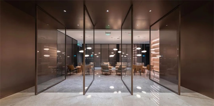 在选材上,FTA设计团队选择了耐污性更佳的纳米表面防火板;在SVP办公室内搭配可升降座椅,专属衣橱;为AI电话间增设了吸引毯以及布艺硬包吸音板;为员工增设了淋浴间......一切细节设计,只为给员工带来有温度的体验。