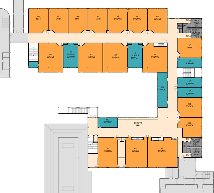 改造后高中部二层平面图(图片来源:Perkins+Will)