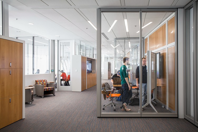 此外,这座建筑还配置了诸如BlueJeans和Skype等大量的协作与交流型工具。建筑显示屏可通过个人设备实现无线访问,以避免在整个建筑范围内布置庞杂的接插线缆。网速超快的网络使用户人群得以在建筑内随处实现资源共享,并与校园内全国知名的高性能计算机中心相连通。这座建筑还与南卡罗来纳州光轨系统 (LightRail System) 进行联网,在这个网络体系里扮演着虚拟连通管理中心的角色。