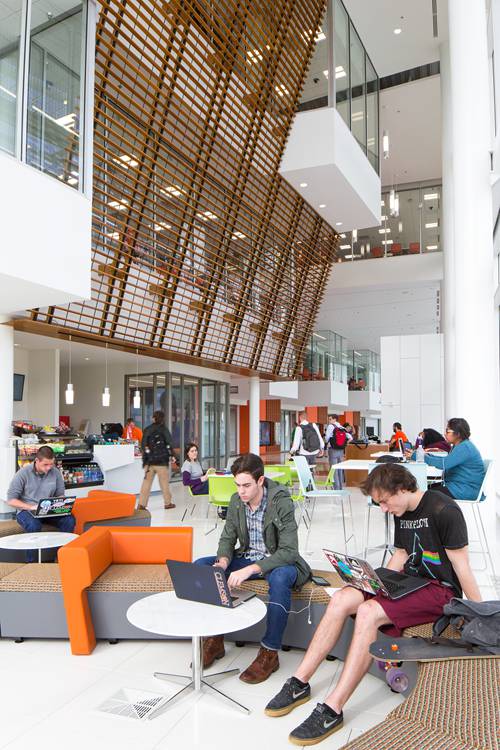 在强大技术网络的支持下,这座建筑运用一系列顶级技术解决方案对科研、创新、合作和互动学习等活动发挥辅助性作用,积极顺应明日及之后的技术需要,不仅为这座大学的设施设定了新标准,也成为学生们尝试各种学习方式和协作方式的实验室。