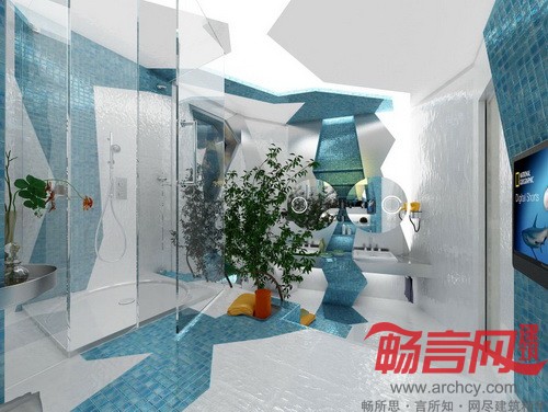 保加利亚首都索菲亚的Gemelli建筑设计工作室的双胞胎设计师Branimira Ivanova 和Desislava Ivanova创造性地提出了2套浴室设计“新概念”方案:“水.几何”(H2O in Geometry)和“沙暴中的绿洲”(An Oasis in a Sandstorm)