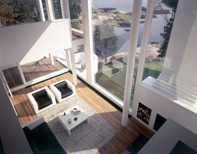 在一片宜人的环境中,迈耶首先由基地的特征确定了住宅的轴线关系:入口从浓密的树林和演示中进入,而主立面直接面向沙滩与大海。