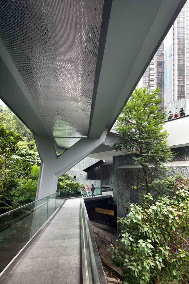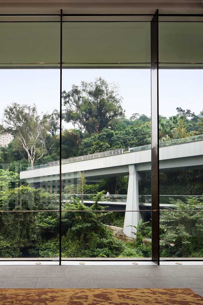 一条双层的人行天桥将栋下半区的场馆和上半区的古迹建筑连接在了一起。这也象征着亚洲协会的使命,加强东方和西方之间的联系,并保护濒临灭绝的野生动物栖息地,这座天桥蜿蜒曲折,穿过丛林,连接着新与旧。该中心将一个杂草丛生,废弃的场地转换成了一个动态的,活跃的场所。它以一个水平的建筑形态立足在香港这片鳞次栉比的高楼大厦中间。