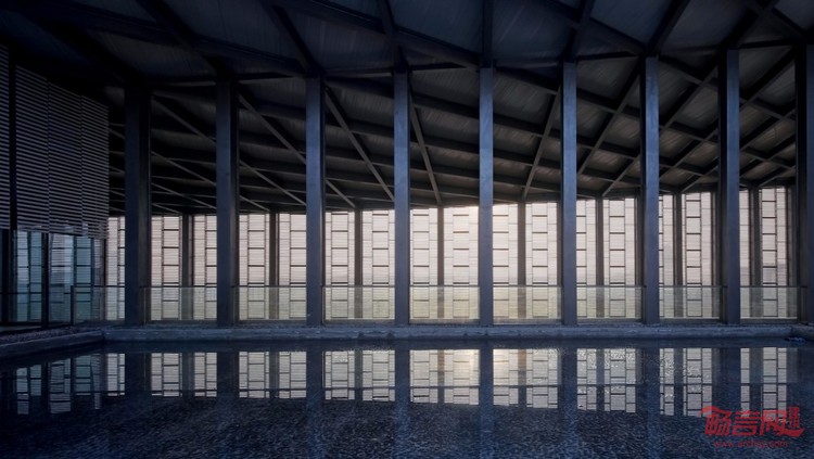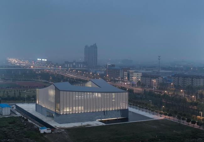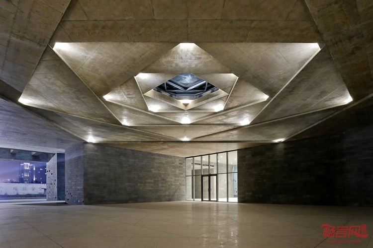 艺术馆的设计尝试混凝土结构与钢结构体系的巧妙转换,下部呈“凸”字形的混凝土结构与上部呈倒扣的“凹”字形的钢结构,形成虚实相生的朦胧意境。