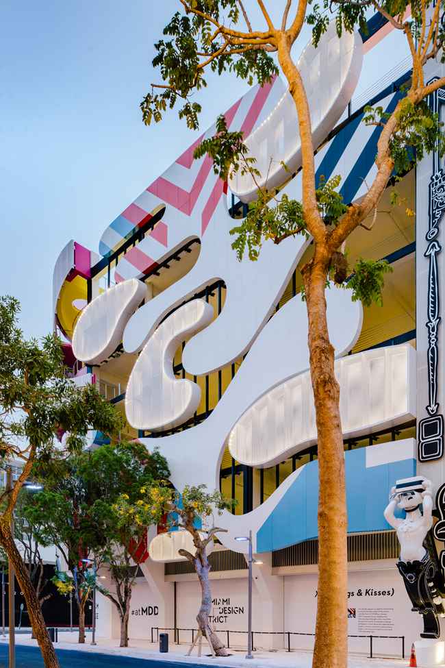 博物馆停车楼位于迈阿密设计园区,这是一个致力于创新艺术、设计和建筑的社区。 该项目由5名设计者合作,7层楼的综合体将包括地面层零售空间和800个停车位。2015年,设计园区的开发者 Craig Robins,委托建筑师和策展人 Terence Riley 发展博物馆停车楼的概念。WORKac, J. Mayer. H, Clavel Arquitectos, Nicolas Buffe和 Riley 自己的建筑公司 K/R (Keenen/Riley) 共同设计停车楼的立面—— Exquisite Corpse(文字游戏)。