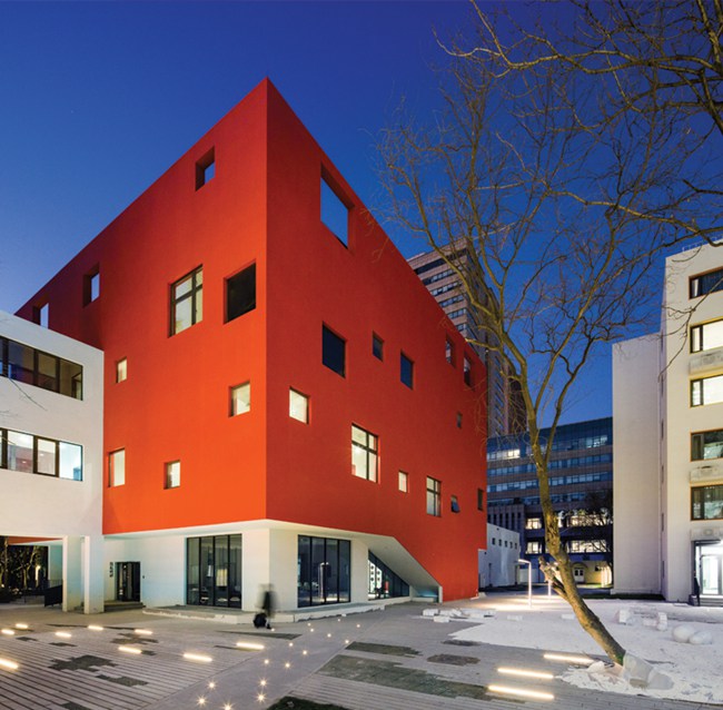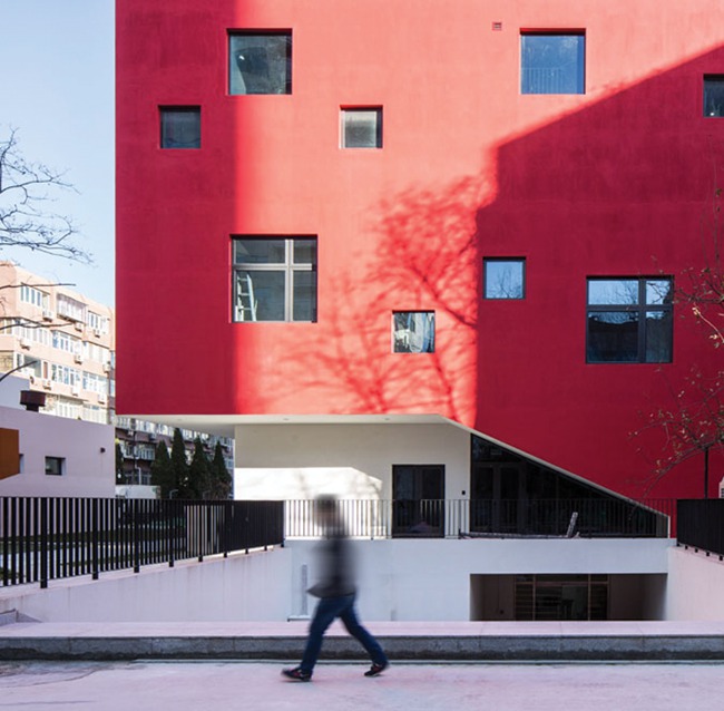 颜色——未来学校最具识别性的设计元素,正如位于校园正中红色的艺术中心,改造后简洁且活波的红色盒子象征着未来学校的朝气与活力。灵感源自曾经爬满校园各个角落的藤蔓植物,色彩的生命力能够以另一种方式延续并由外而内为新校园带来活力。