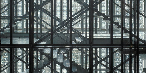 玻璃窗格之后是整齐划一的金属构件,具有强烈的图案表现性和科学幻想效果