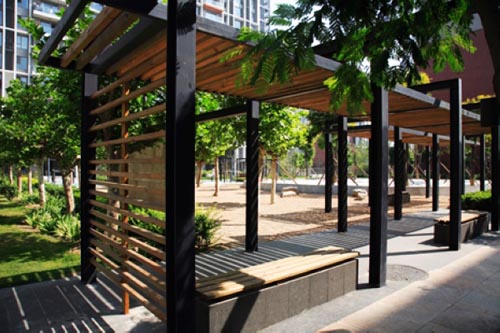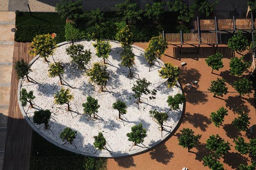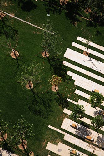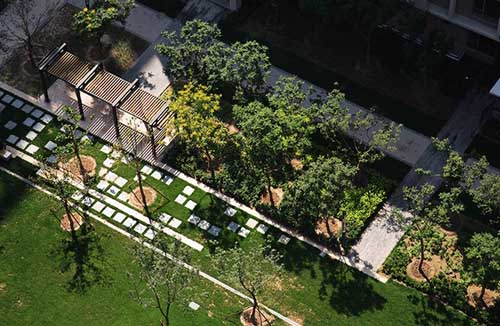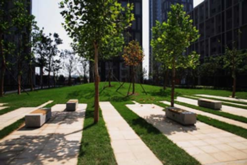 北京北纬40°住宅小区位于北京朝阳区,项目的名称来自于其位置与纬度线。HASSELL受托为此13.8公顷地块以及一旁的11.8公顷“公共绿化公园”进行景观设计。景观主轴由5个主题住宅花园构成。项目应用了串连景观艺术元素将这些花园连接起来。由于项目的所在地是北京,当地对用水量有所限制,因此项目的另一特点就是水源的高效使用。从长远来看,这一独特设计不仅环保,还为住户节约用水量。