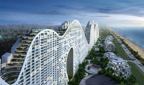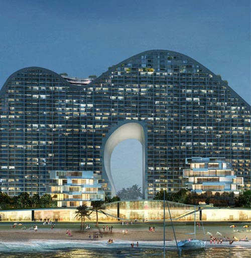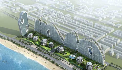 该“假山”工程是由中国MAD公司设计的,该工程是一个新的住宅开发区,它位于北海市的滨水区域中。工程由两种类型的住宅大楼组成――高层和低层,这两种大楼都在中国的住宅开发区中非常的普遍。长长的波浪式的屋顶加上圆形的结构使整个工程看起来非常的与众不同。这种设计扩大了住户的视野,同时它也成为了滨水区域和内陆地区之间的一个巨大的过渡型建筑。