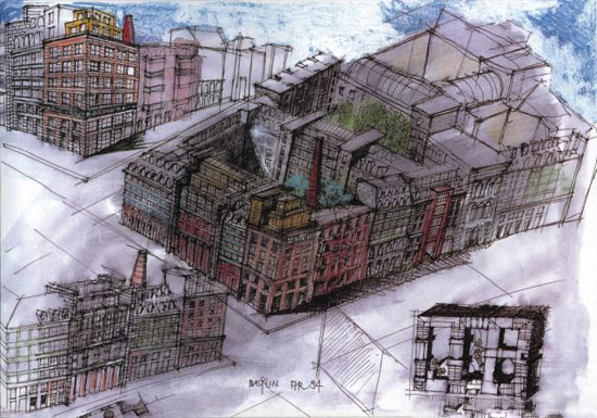 罗西将建筑与城市紧紧联系起来,提出城市是众多有意义的和被认同的事物的聚集体,它与不同时代不同地点的特定生活相关联。罗西将类型学方法用于建筑学,认为古往今来,建筑中也划分为种种具有典型性质的类型,它们各自有各自的特征。罗西还提倡相似性的原则,由此扩大到城市范围,就出现了所谓“相似性城市”的主张。罗西将城市比作一个剧场,他非常重视城市中的场所、纪念物和建筑的类型。