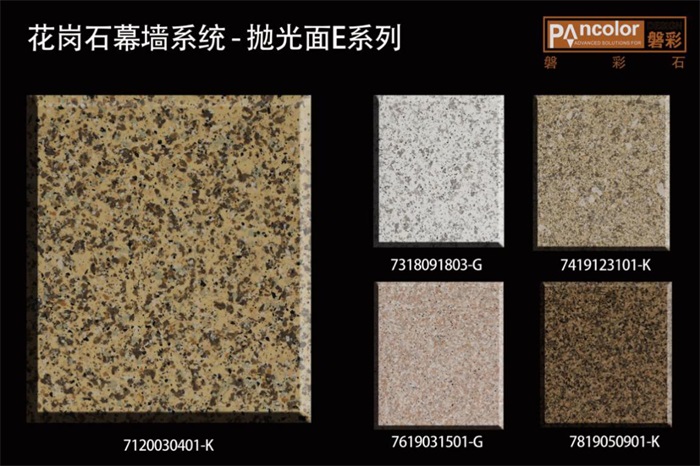 仿照石材抛光面效果,附着力强,不起泡、不剥落、不易褪色、防水防霉,耐污自洁,稳定性好,仿真性近100%。