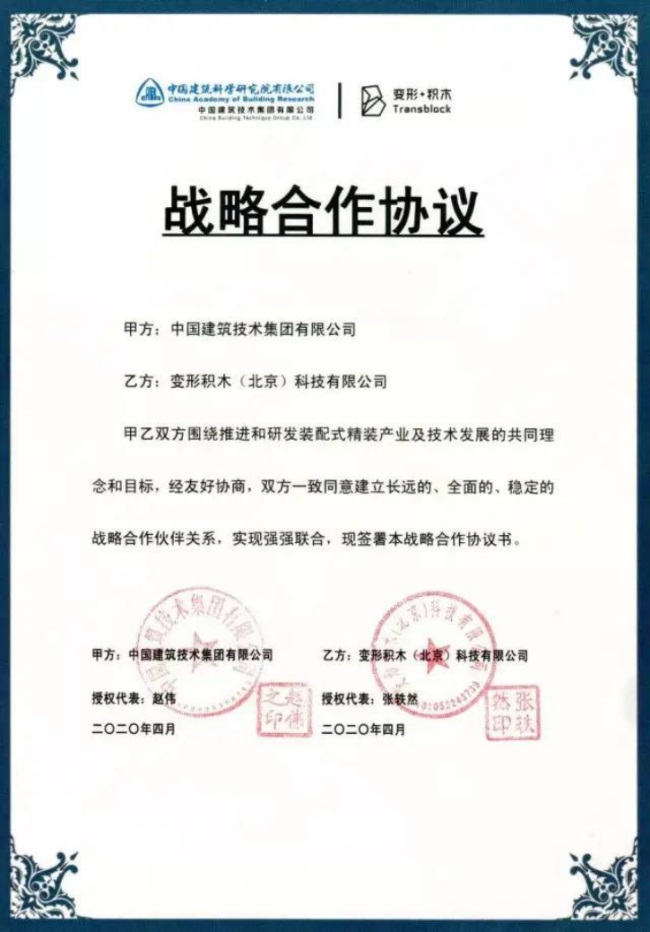 变形积木也是唯一与中国建筑科学研究院体系签署战略合作协议的创业公司。