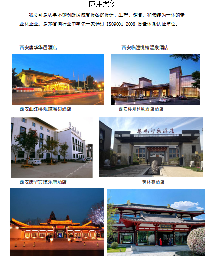 陕西海特厨具工程有限公司是一家西北地区致力于星级酒店(含五星级酒店)、宾馆、员工餐厅、高级商务会所厨房策划设计咨询、不锈钢商用厨具研发﹑制造加工、销售和安装﹑维护为一体的专业化企业。参加过许多星级酒店、大型航站楼、职工食堂等厨房工艺设计、策划咨询、厨房设备制安工作。我公司积极推广和借鉴国际先进的设计理念及设计标准,特别对星级酒店设计,有着独特的先进经验和思路。为客户提供节能环保、绿色低碳、智能高效、安全健康、人性化的厨房策划设计服务。