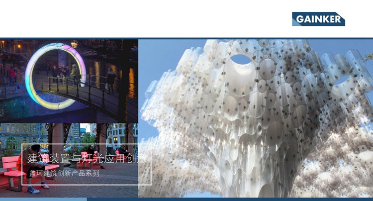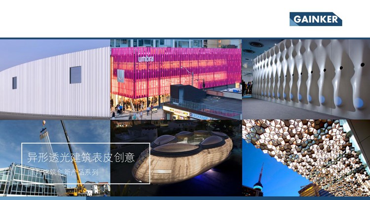 盖珂建筑科技是上海盖珂实业有限公司的建筑产品部门,是德国GAINKER GmbH公司在中国的授权分支机构,负责德国GAINKER建筑树脂板材和系统产品在中国区域内的市场运营和分销管理。总部位于德国的GAINKER公司(www.gainker.de)是一家专注于建筑产品和系统设计开发和制造的技术优秀公司。这些富有创造力和令人激动的产品始终致力于帮助建筑师和设计师实现他们伟大的创意和甚至是看起来疯狂的想法。盖珂公司所负责的产品涵盖了建筑领域的许多应用,从建筑立面和屋面、建筑室内和陈列装置、到建筑景观和灯光等无处不在。不仅仅销售产品,而是提供给客户全面的解决方案。这意味着在从项目概念到实现的每个阶段,协助客户进行设计深化、预算制订、模型制作、施工指导等。