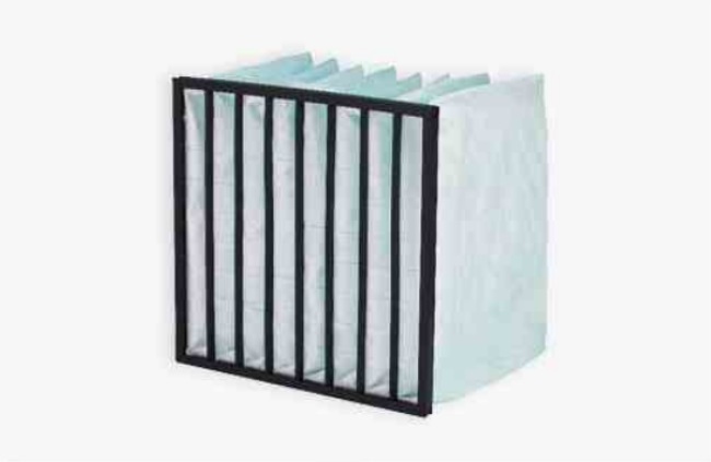 V型过滤器由多片无隔板过滤芯组合而成,相比普通有隔板过滤器,滤料面积极大增加,充分降低运行阻力,降低能耗,节省成本。