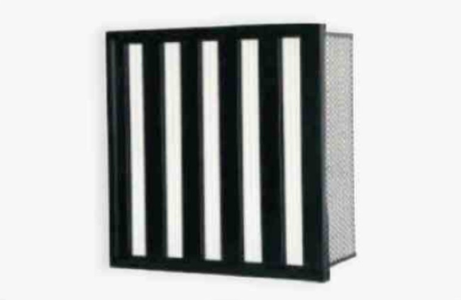 此产品使用无隔板密褶式滤芯,V型结构,极大增加滤料面积,提高风速,降低初阻力。