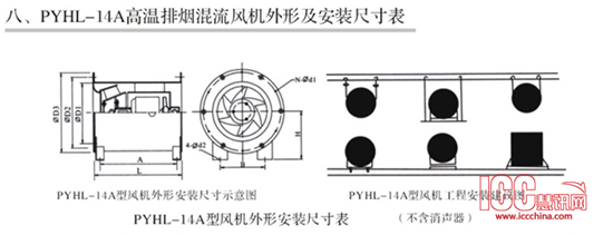 风机的性能在性能表上查阅,表中列出的性能是最高效率范围内的性能,按流量分为五个性能点,选用时按性能表为准。性能选择表是标准状态下的性能,无论技术文件或定货要求和性能均按标题状态为准,标准状态指大气压=101325Pa,t=20℃相对湿度w=50%时的空气状态,如实际使用条件与上述不符合时按有关公式进行换算,风机安装方式可分为立式和卧式,如立式安装须在订货中注明,如流量、压力、安装尺寸等性能参数有特殊要求,公司将为您另行设计生产。XGF(PYHL-14)系列通风机的流量数值为300℃高温空气流量值,比平常选用HL3-2A系列通风机流量值+5%.