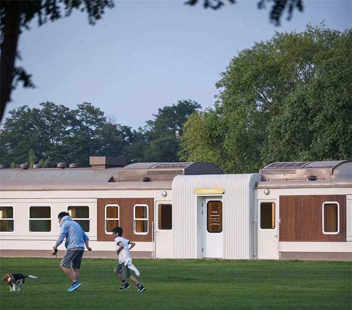 ??这是一间用真正的绿皮火车车厢改造的火锅餐厅,它现在坐落在阿那亚D3片区的湿地公园里。三节车厢到达现场之前,火车轨道就需要铺好了,我们安排它沿
