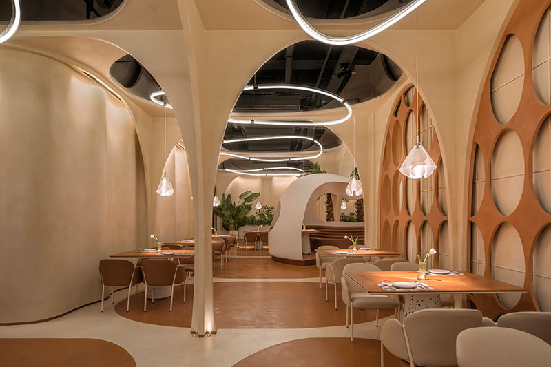 场地虽然柱子多,但整体空间方正规整,有潜力被整合、梳理成具有秩序感的结构空间。整体空间概念是由Arabesque演化而来,不管是阿拉伯图案的无限